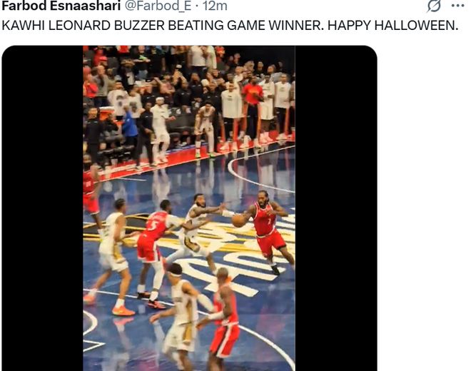 快船队记Farbod Esnaashari写道:“莱昂纳德在关键时刻投进制胜球。万圣节快乐。”